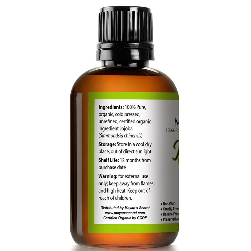 Mayan's Secret Jojoba Oil USDA Certified Organic (4oz Large) | Natural Cold Pressed Unrefined Hexane Free Oil for Hair & Face | Carrier Oil