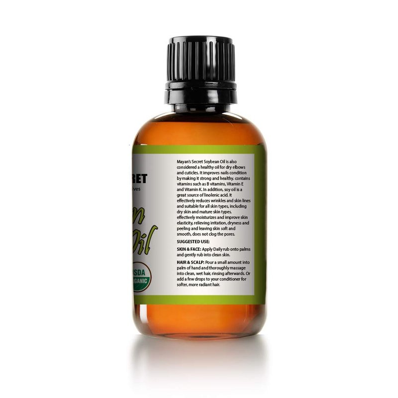 - HIGH QUALITY, USDA CERTIFIED ORGANIC SOYBEAN OIL -What sets our Essential Oils apart is our unparalleled purity and concentration. One ingredient only -Pure Organic Soybean oil, Natural, Refined, Cold Pressed with no adulterants or dilution, Mayan’s Secret oils provide the maximum benefit possible and are uncompromising.