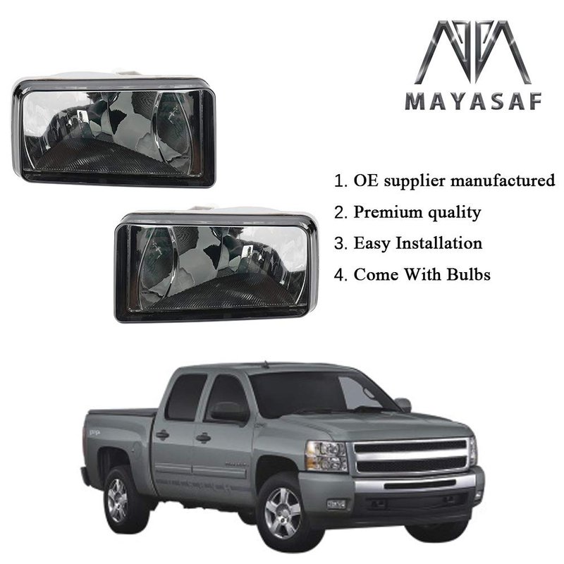 MAYASAF Smoked Lens Fog Light Pair of Bumper Fog Lamp for CHEVY 2007-14 Silverado/Suburban/Avalanche/Tahoe, for GMC 2007-14 Sierra/Yukon, 2007-08 Escalade