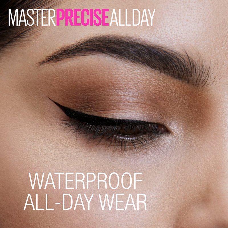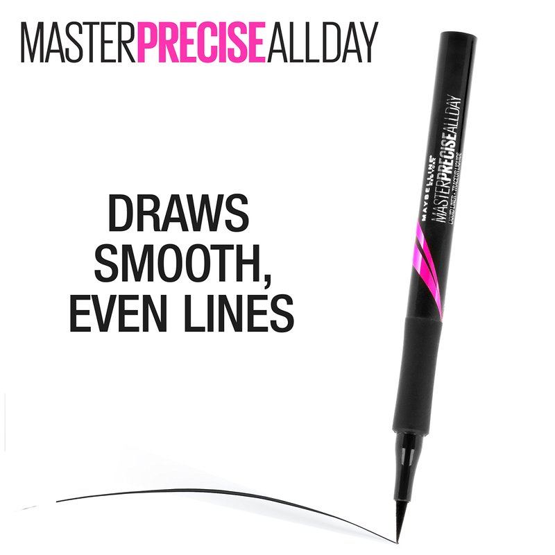 - No-Smudge Liquid Eyeliner: Precise, sharp lines; Intense color; No smudge; Up to 12hr wear; Maybelline Master Precise All Day liquid eye liner pen stays put all day with whatever look you're working