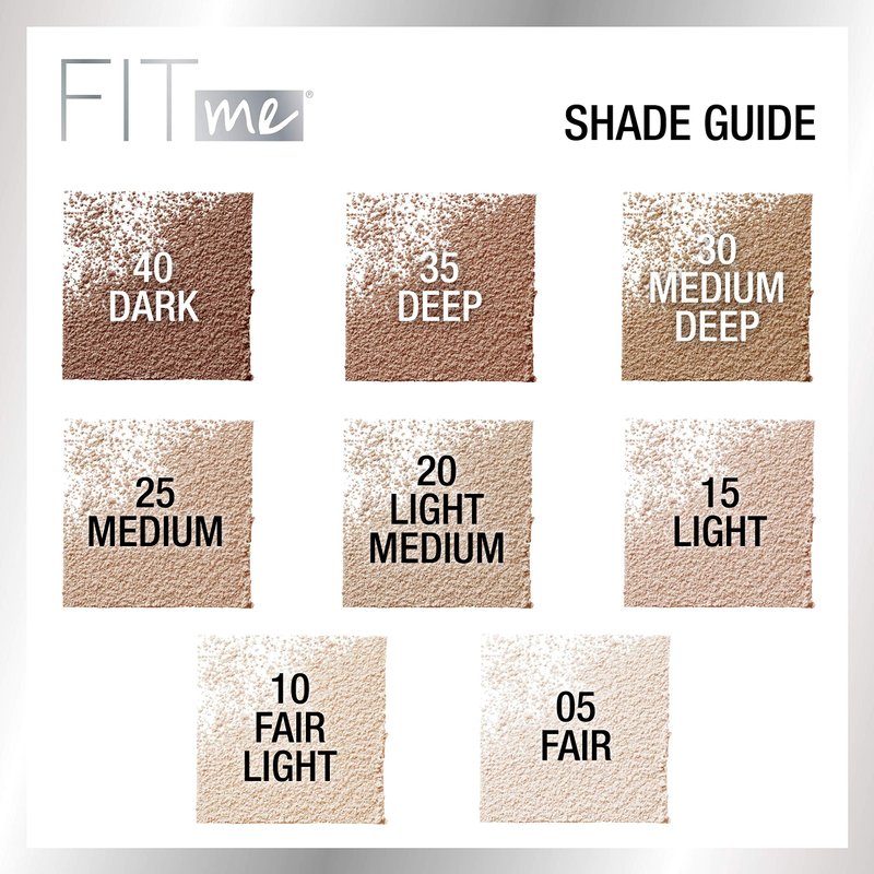 - A Shade That Fits Me: Maybelline Fit Me finishing powder provides coverage for a wide array of skin tones, from Ivory to Mocha; Use as a setting powder or to control shine for a flawless, natural-looking, "I woke up like this" finish