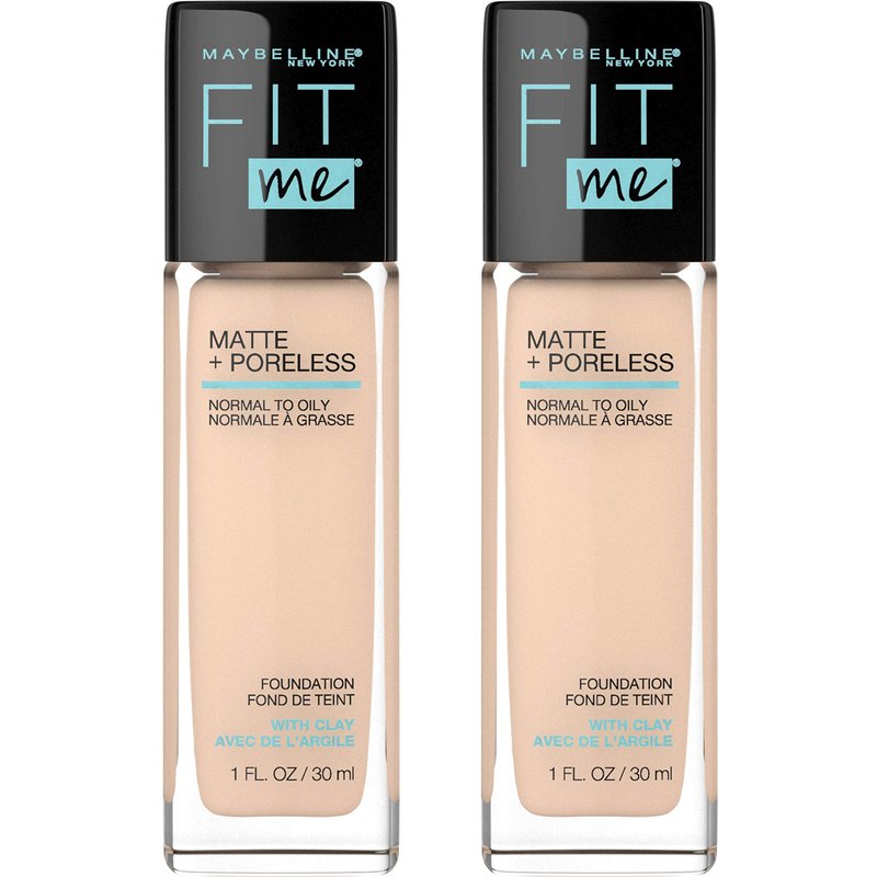 Maybelline Fit Me Matte + Poreless Liquid Foundation Makeup, Ivory, 2 COUNT Oil-Free Foundation