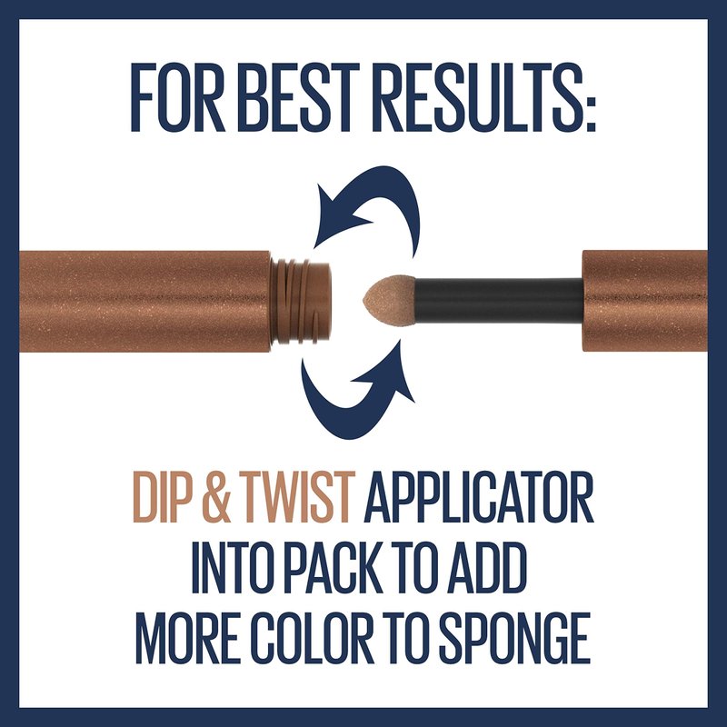 - For best results, dip and twist Maybelline New York Color Strike eye shadow applicator into pack to add more color to the sponge