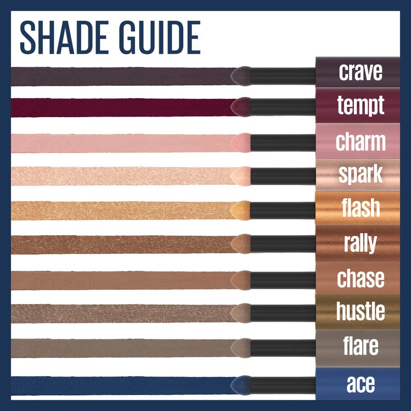 - Available in 10 striking shades, with 6 beautiful matte eyeshadows and 4 stunning metallic eyeshadows, like Crave, Tempt, Charm, Spark, Chase, Hustle, Ace and more