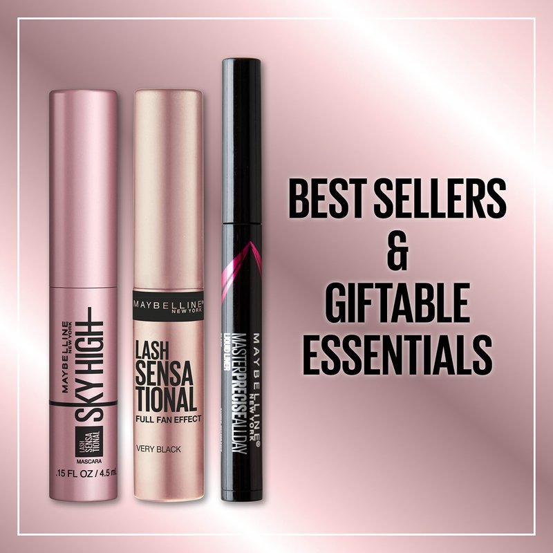 - Eye Makeup Must-Haves: Maybelline's most loved mascaras and eyeliner are included in the make up gift set, ready-to-gift and perfect for travel. Includes miniatures of Sky High Mascara, Lash Sensational Mascara and Master Precise Liquid Eyeliner