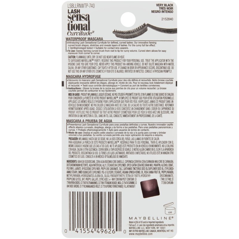 Maybelline New York Lash Sensational Curvitude Waterproof Mascara, Very Black, 0.32 Fluid Ounce