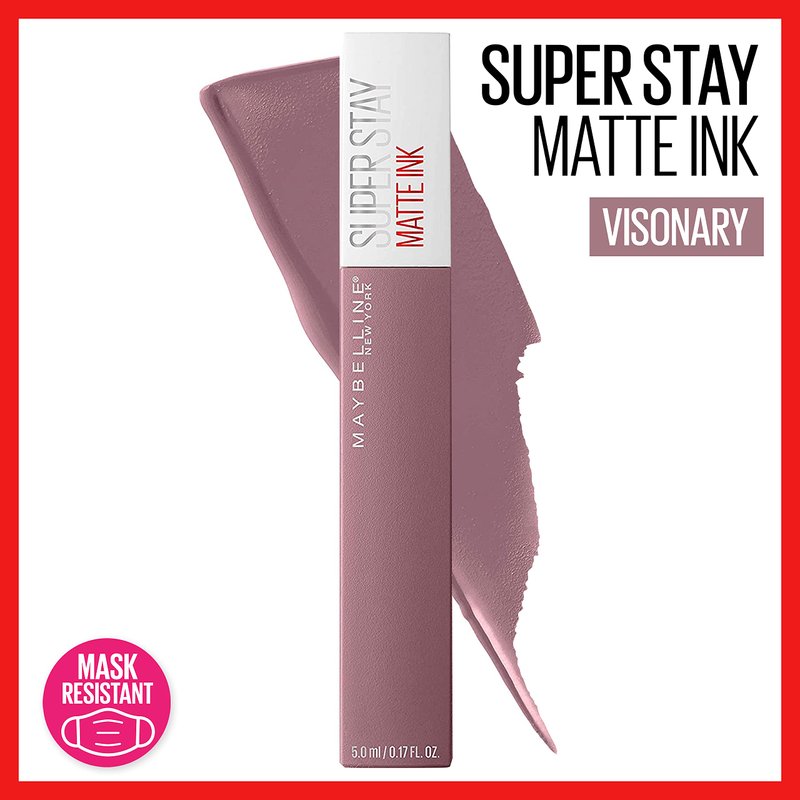 - Perfectly Matte: Achieving a flawless, color-intense matte finish is just a swipe away with Maybelline Super Stay Matte Ink liquid matte lipstick. Get up to 16 hours of wear with this liquid lipstick in shade Visionary for a taupe purple lip color