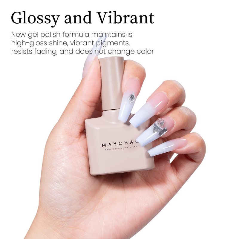- Infinite Shine Long Wear: MAYCHAO gel nail polish will last up to about 28days or longer with proper nail prepare (filing, buffering, and cleaning ). More strong, more flexible, and simpler to manipulate than conventional nail polishes, giving your nails a lovely appearance.