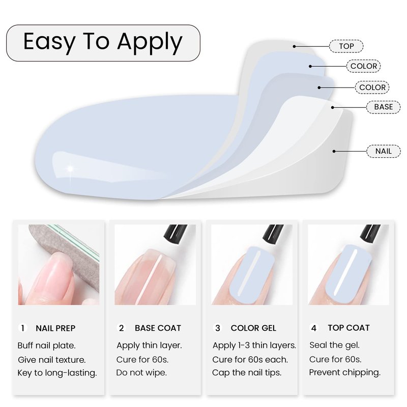 Required UV/LED nail dryer lamp, must be used with gel base coat top coat.
