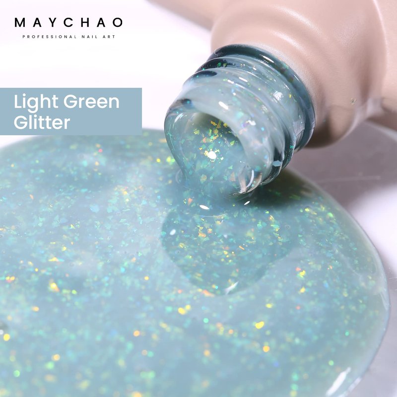MAYCHAO 15ML Light Green Glitter Gel Nail Polish 1Pc Green Shimmer Gel Polish Soak Off UV LED Nail Polish Nail Art Starter Manicure Salon DIY at Home, 0.5 OZ