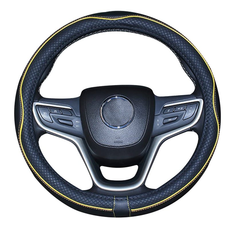 Mayco Bell Universal Standard Size Steering Wheel Cover Anti-Slip,Safety,Soft,Breathable,Durable,Full Surround,Comfortable Grip Microfiber Leather (14.5-15 inch,Black Yellow)