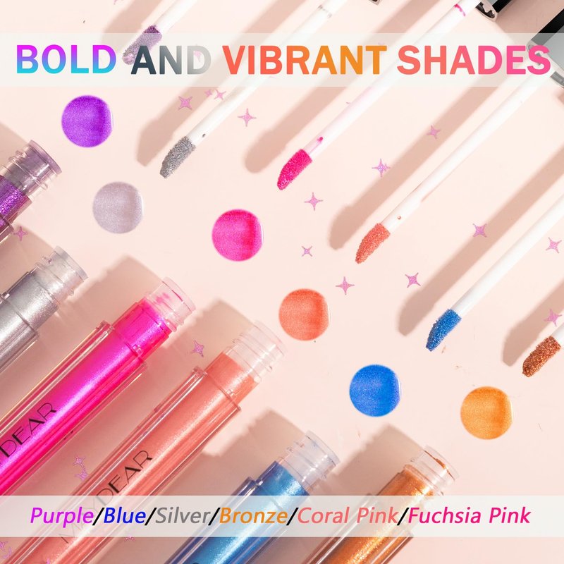 - 💋 BOLD AND BEAUTIFUL COLORS: This lip gloss set comes with 6 stunning shades of lip gloss that will make your lips pop: blue, purple, bronze, silver, coral pink, and fuchsia pink. These colors are perfect for enhancing any outfit and making you stand out at any party.