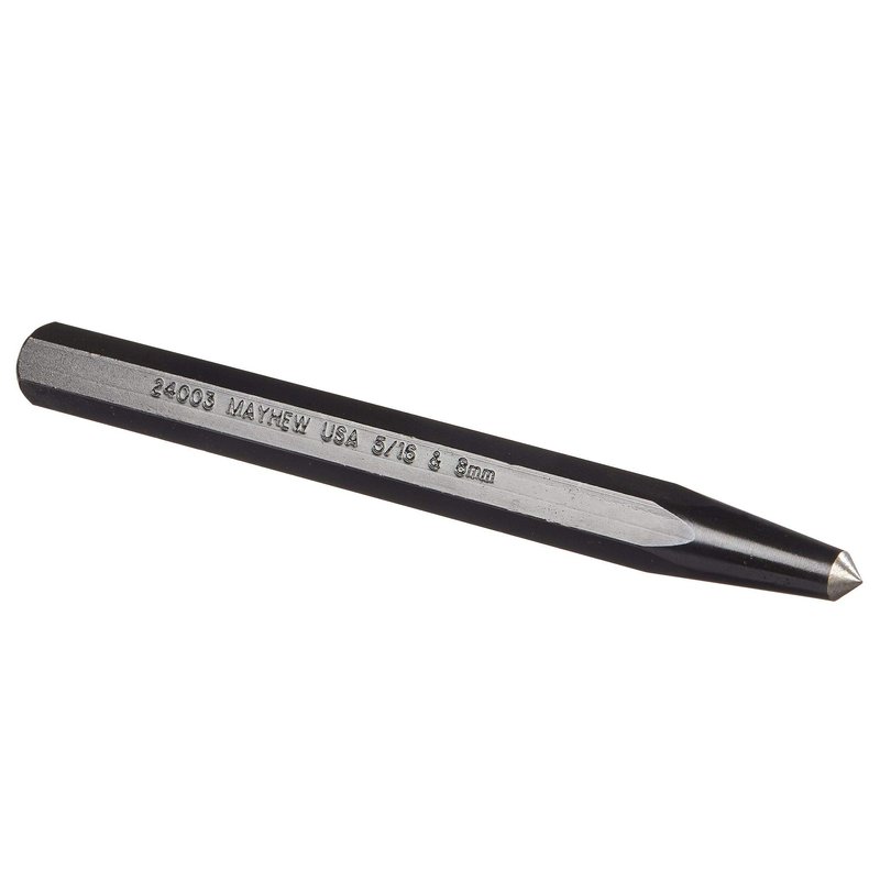 Mayhew Tools 24003 Center Punch, Black Oxide Finish, 1/2" Body x 6" OAL, 5/16-8mm Point