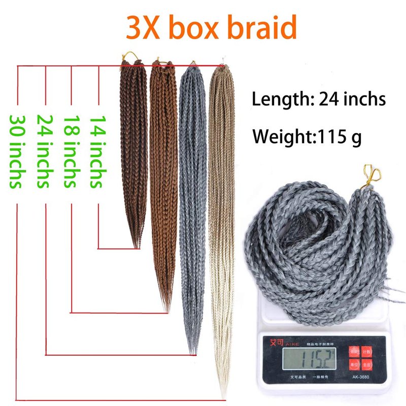 Name:3X Box Braids Crochet Hair Synthetic Hair Fiber High Temperature Soft Light and Breathable