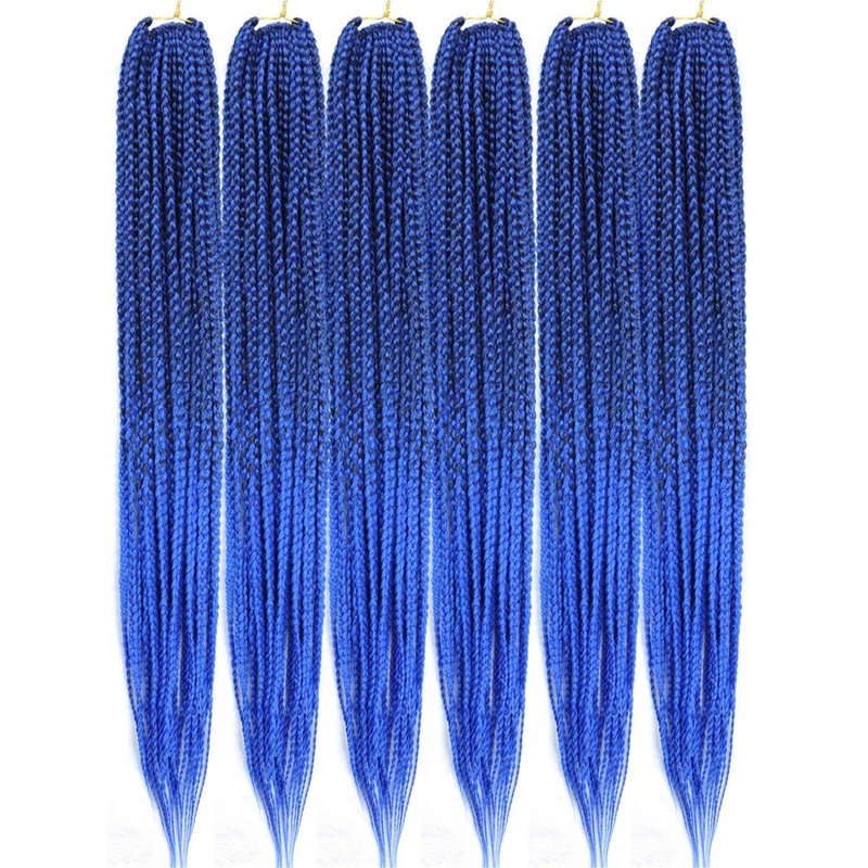 Mayloss 6 Packs/Lot (14/18/24/30) inch 1cm 20 Strands/Pack Thin 3X Box Braid Crochet Hair Extensionin Diameter 3X Synthetic Braid Hair Extensions Crochet Braids Hair Color(24Inch T1B/blue)