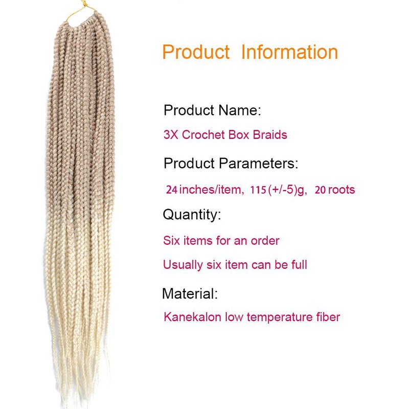 Name:3X Box Braids Crochet Hair Synthetic Hair Fiber High Temperature Soft Light and Breathable