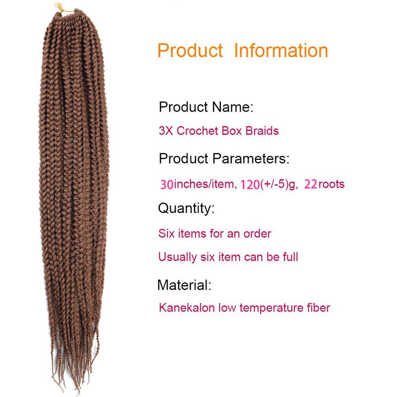 Name:3X Box Braids Crochet Hair Synthetic Hair Fiber High Temperature Soft Light and Breathable