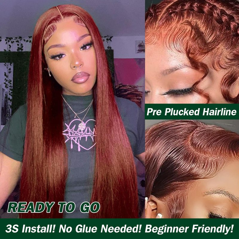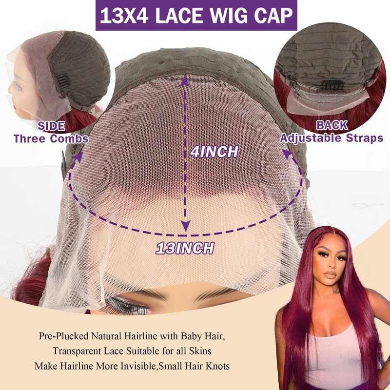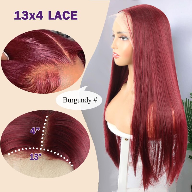 Mayouda 13x4 HD Red Lace Frontal Wig for Black Women Long Straight Lace Wigs With Baby Hairline Synthetic Pre Plucked Wigs Brazilian Virgin Hair Burgundy Lace Front Wigs (30Inch, Burgundy)