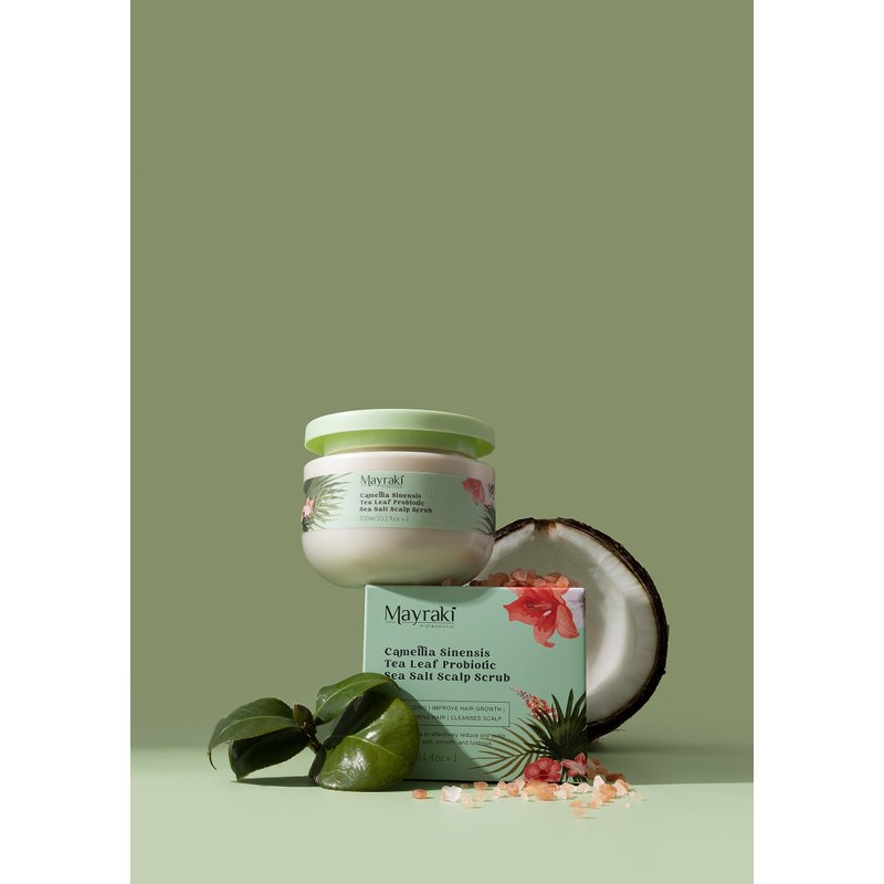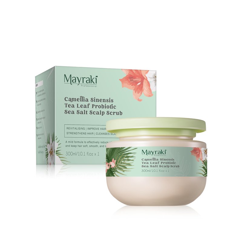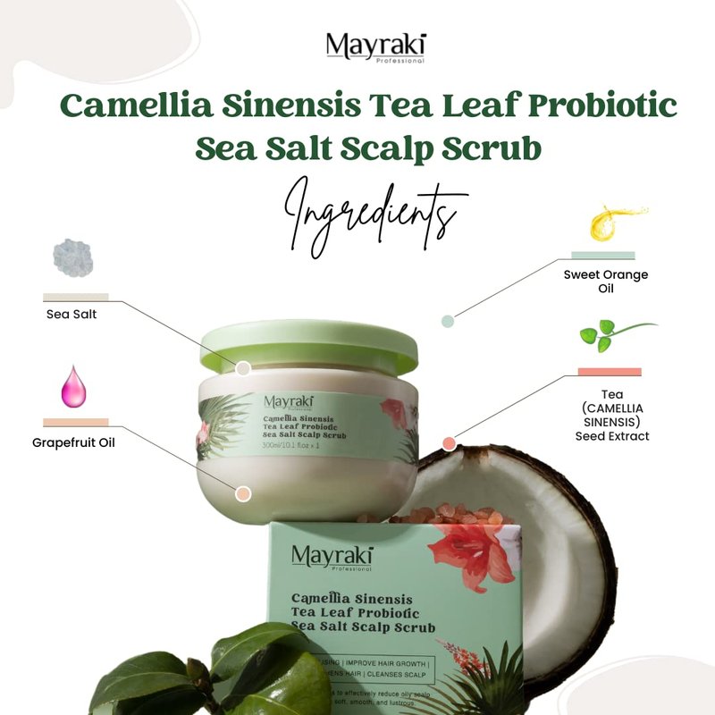 - EXFOLIATES SCALP - Camellia Sinensis Tea Leaf Probiotic Sea Salt Scalp Scrub helps boost the effect of the stimulation, gently scrubs away dead skin cells that clog the hair follicles, it promotes healthy blood and oxygen flow to the scalp.