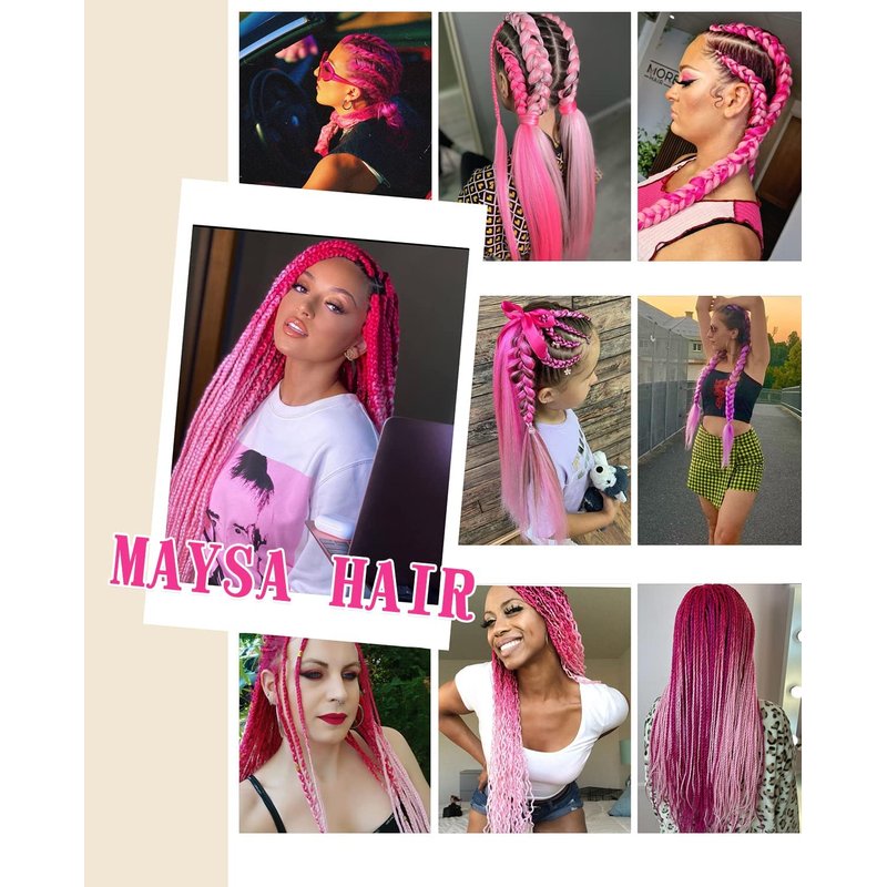 MAYSA Hot Pink Ombre Braiding Hair Extensions, 24inch Pink Braiding Hair Pre stretched, 3Packs Synthetic Jumbo Braiding Hair For Women and Girls #Hot pink-pink