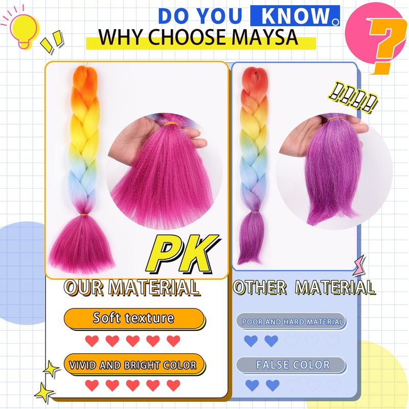 - Material:Ombre Braiding Hair no fade, no shedding, no smell, easy to crochet, braid and twist, hold texture well,Multiple colors Braided hair has a variety of colors, Two Tone,Three Tone,Four Tone,bright and real colors, natural gradients.