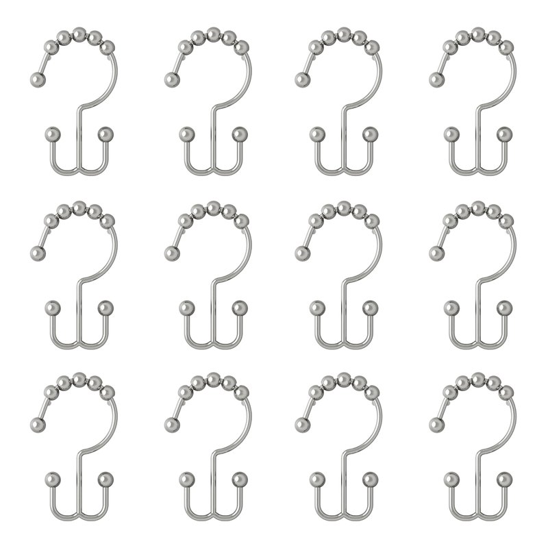 Maytex Shower Curtain Hooks, Shower Curtain Rings, Rust-Resistant Decorative Double Roller Glide Shower Hooks, Shower Rings for Bathroom Shower Rods, Curtains, Liners, Set of 12, Chrome