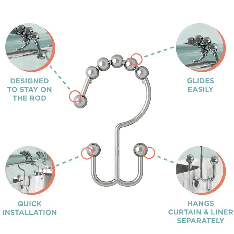 - EASY ROLLER GLIDE DESIGN: Roller shower curtain hooks feature an easy gliding 5-ball top that allows them to effortlessly glide across your shower rod with less noise