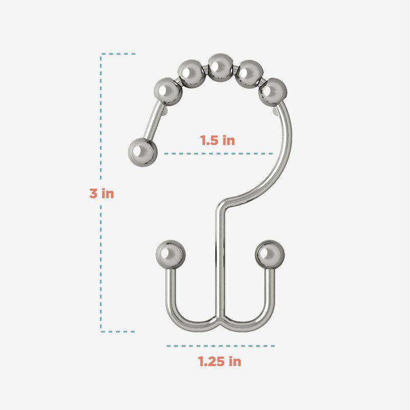 - INNOVATIVE DOUBLE HOOK TECHNOLOGY: Double hook design separates your shower curtain and liner and makes them easy to replace; use the secondary hook to hang shower accessories