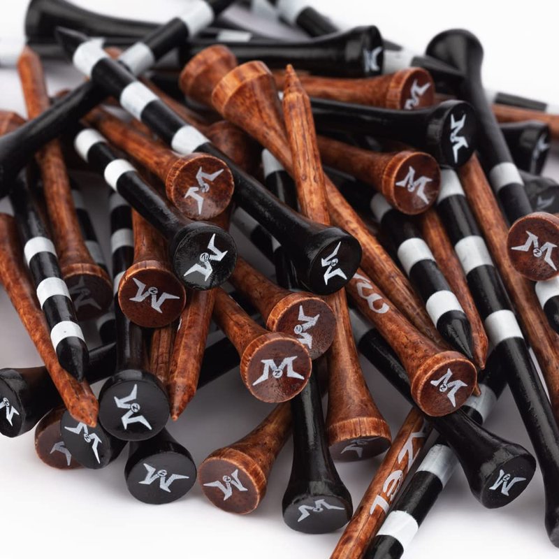 MAZEL Professional Natural Wood/Bamboo Golf Tees 2 3/4 Inch & 3 1/4 Inch,Pack 50,Reduce Friction & Side Spin, More Durable and Stable Golf Tees (Black &Brown Wood Tees)