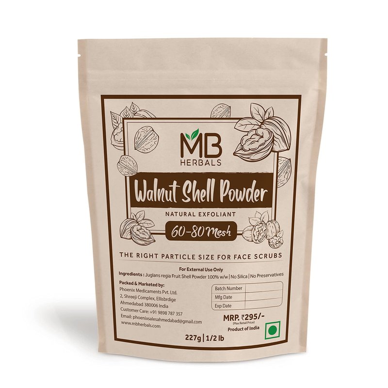 - MB Herbals Walnut Shell Powder is 100% Natural. There is No Silica or any Artifical Additive or Chemicals. No Preservatives. For External Use Only. This is a cosmetic Ingredient used to prepare Home-Made (DIY) Face Scrubs, Exfoliants, Foot Scrubs, Exfoliators, Peeling Creams, Lotions etc. Do not use for cleaning Machine Parts. This is not suitable for Industrial Use.