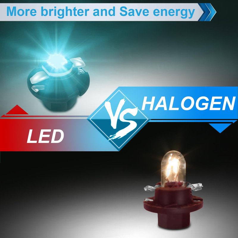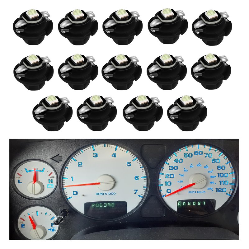 - ★ Much brighter than Halogen bulb: Built in high power SMD LED chips, best replacement for the old or burnt out bulbs, Low power consuming, low heat and Long-lasting Note: There's light blue film in instrument cluster, it will change Ice Blue LED into blue.
