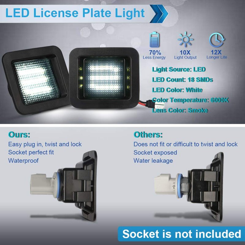 - ★ Package includes: 2 LED License Plate Lights (Socket is not included); 1 Year manufacturer warranty since order purchase date; feel free to send email if there's any issue before or after purchase, your case will be taken seriously regardless of warranty period
