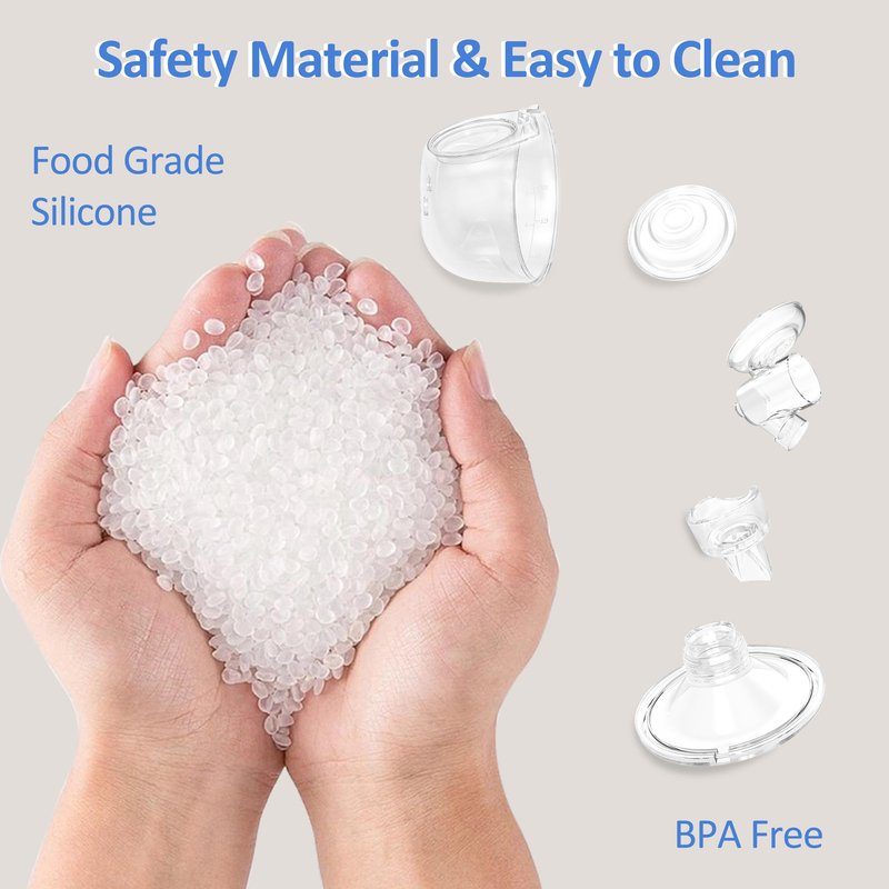 - 𝗙𝗼𝗿 𝗠𝘂𝗹𝘁𝗶𝗽𝗹𝗲 𝗣𝘂𝗺𝗽𝗶𝗻𝗴 𝗡𝗲𝗲𝗱𝘀:The Mcadero M5 hands-free breast pump offers the convenience of one full charge lasting 120 minutes, allowing for 5-6 pumping sessions. This makes it ideal for your entire day's outdoor activities. Additionally, it is made of BPA-free food-grade silicone, ensuring safety for both you and your baby.