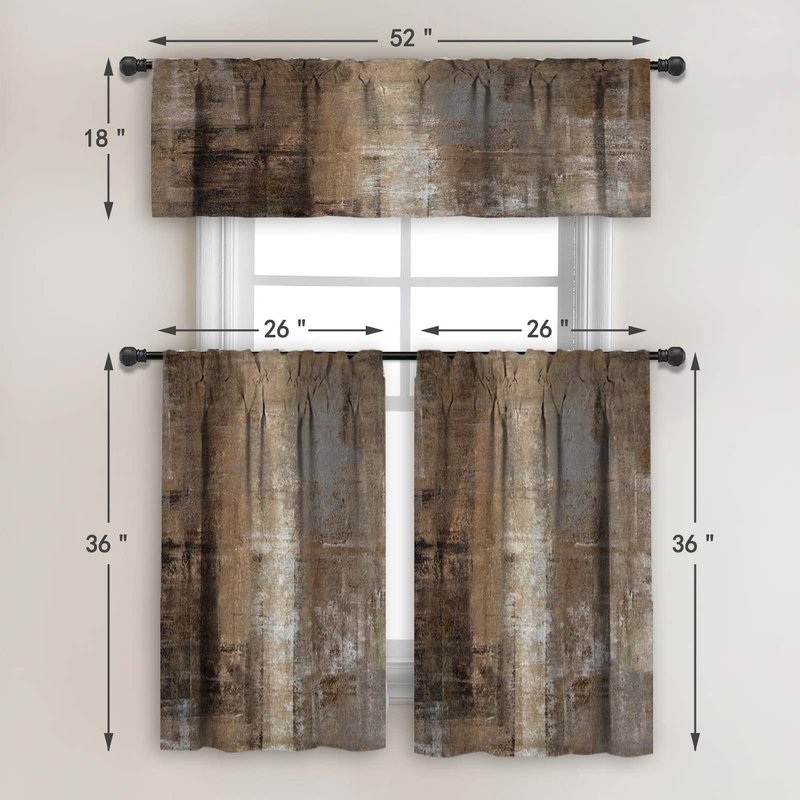 MCALK Brown Kitchen Curtains Tiers and Valances Set 3 Piece for Windows Grey Kitchen Window Curtains Set,Modern Abstract Art Valances for Living Room(36" Tiers Set)