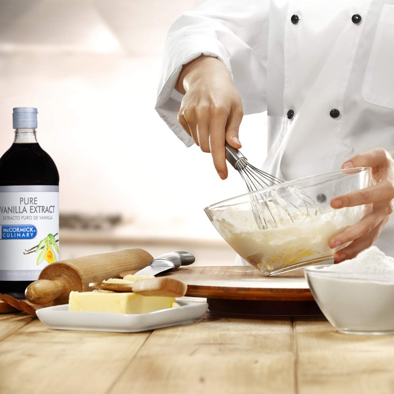 - RICH, VANILLA TASTE: McCormick Culinary Pure Vanilla Extract adds highly aromatic qualities and rich, caramelized, bourbon-rum flavor notes to all kinds of baked goods; achieve delicious dishes the easy way