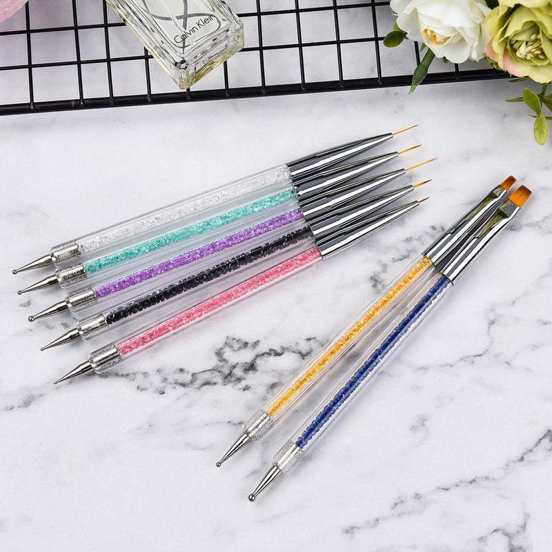 - Material: these nail gels designs brushes are made of alloy, diamond and acrylic, durable enough for your daily using; the nib is made of high-quality thinnest nylon hair and the shine rhinestones inside the handle, fashionable design, best for painting. The nail mixing palette is made of quality resin material which possesses smooth texture, easy to clean and wipe off, not only mix colors, but also can be used as a nail art display and shooting props
