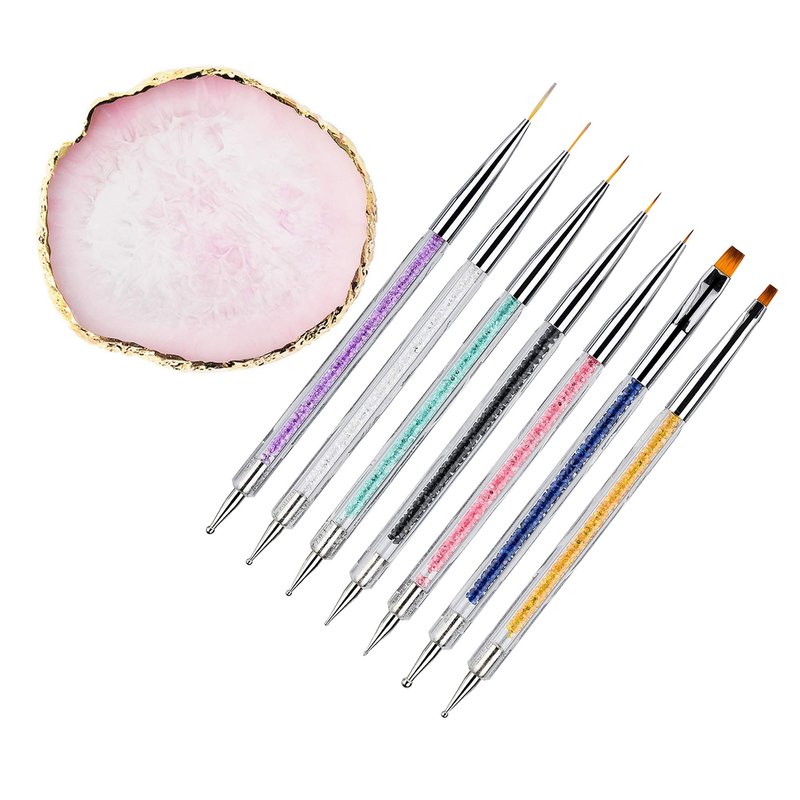 - Package includes: you will get 7 pieces nail art brushes and 1 piece gold-rimmed resin palette in total, each brush pen with 2 different ends, you can choose according to your different needs and suitable to hold many colors and pigments you want to mix with pallette, enough quantity and patterns for you to dress up your nail and share with your friends