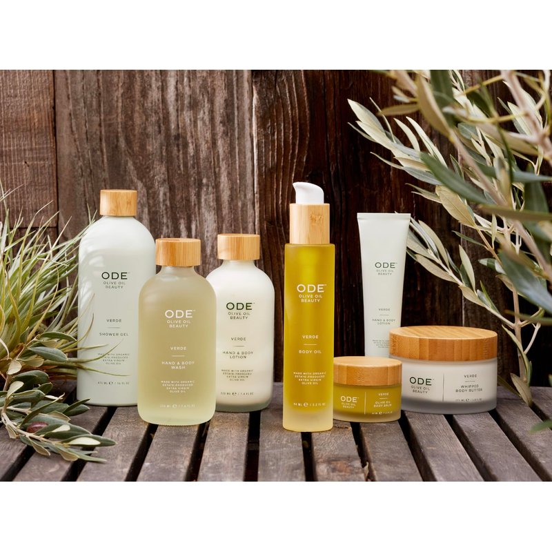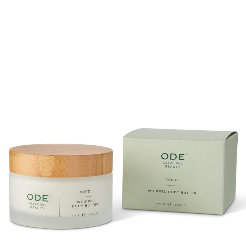 This nourishing olive oil body butter is enriched with organic shea and cocoa butters for luxurious, whipped hydration. A highly active treatment cream, it works to brighten and firm skin. Our Whipped Body Butter 5.8 FL OZ is crafted with: Hyaluronic Acid to reduce the visibility of fine lines and wrinkles by attracting and retaining moisture. Rosehip Fruit Oil with Vitamin A and retinol to create a sumptuously even skin tone. Organic Extra Virgin Olive Oil to deliver powerful polyphenols and antioxidant protection to the skin with readily-absorbable squalene, an extremely hydrating lipid The Verde Collection layers the scents of freshly cut grass, herbaceous basil, green olive, and ripe tomato leaf to create a signature scent with the distinct and uplifting feeling of the outdoors. While strolling through rows of olive trees at our Ranch in Petaluma, California, you’ll brush against low hanging branches and walk through the tall grass that sprouts from the earth below. We formulated this scent as a way to evoke this experience at home. We believe that nourishment matters, inside and out. Crafted in California with McEvoy Ranch Organic Extra Virgin Olive Oil delivering powerful polyphenols and antioxidant protection to the skin with readily-absorbable squalene, an extremely hydrating lipid. We approach ODE Olive Oil Beauty with the same firm commitment to health, quality, and sustainability to create body care that’s both effective and all-natural, known to be: Ultra-hydrating Anti-inflammatory Antioxidant-rich Antibacterial Our promise: Leaping Bunny Certified and cruelty-free Non-GMO Formulated without parabens, phthalates, or sulfates BPA-free packaging