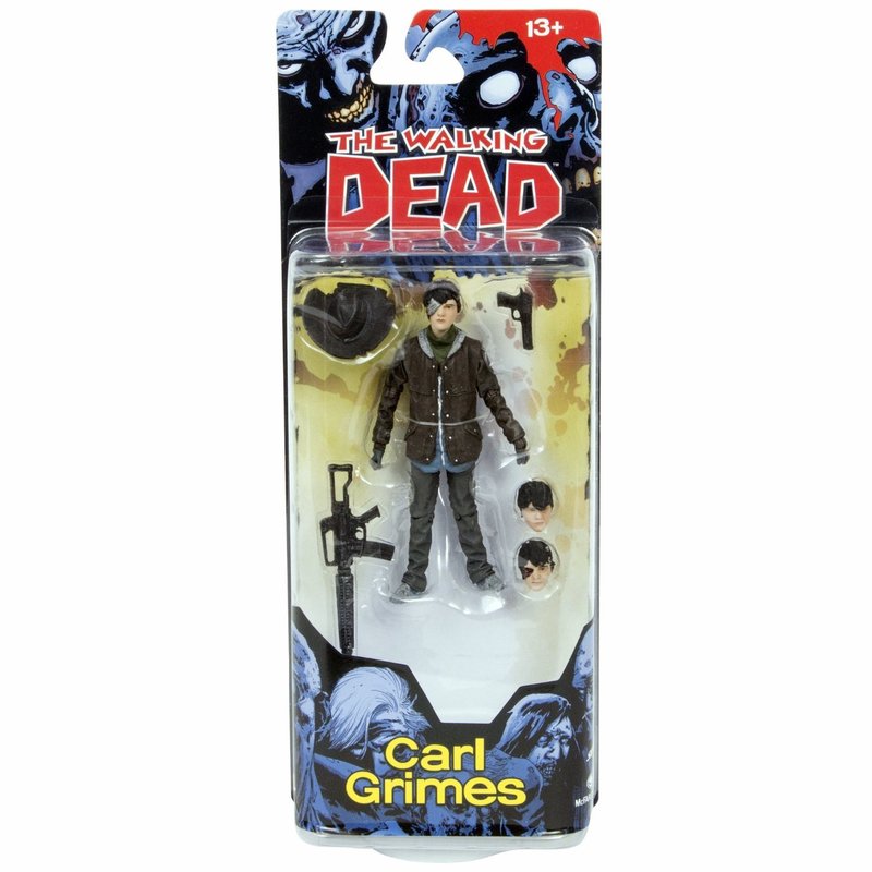 - Our figure features Carl Grimes in his classic button up shirt, scarf, and two alternate heads