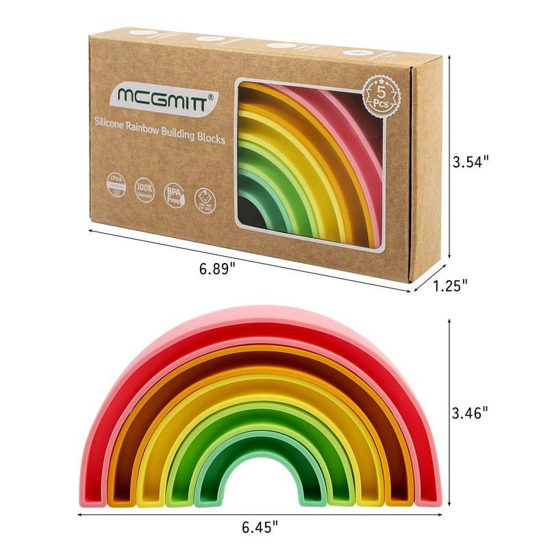 MCGMITT Rainbow Stacker Toy, Silicone Rainbow Stacking Toy, Rainbow Building Blocks, Kids and Toddler Stacking Toy, Rainbow Decor Toys, Helps Kids Develop Hand-Eye Coordination, 5 Layers