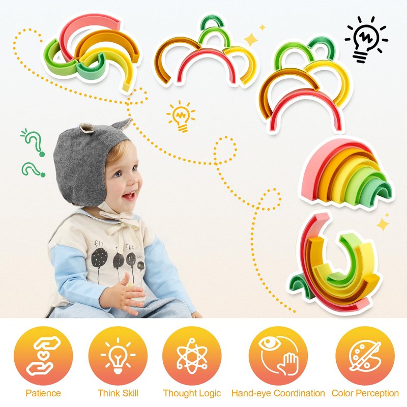 - 【Safety Material】Made from 100% food-grade silicone, this rainbow stacking toy is BPA-free, phthalate-free, and lead-free, ensuring a safe playtime experience for your baby.