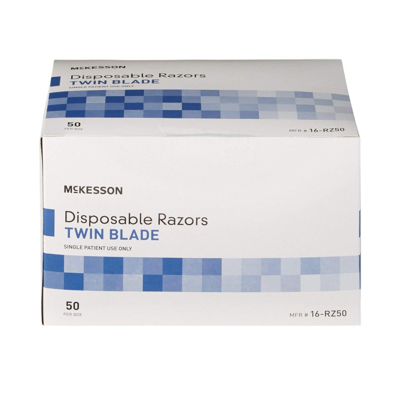 McKesson Disposable Razors, Shaving Razor, Twin Blade, Stainless Steel Blade, Blue, 50 Count, 1 Pack