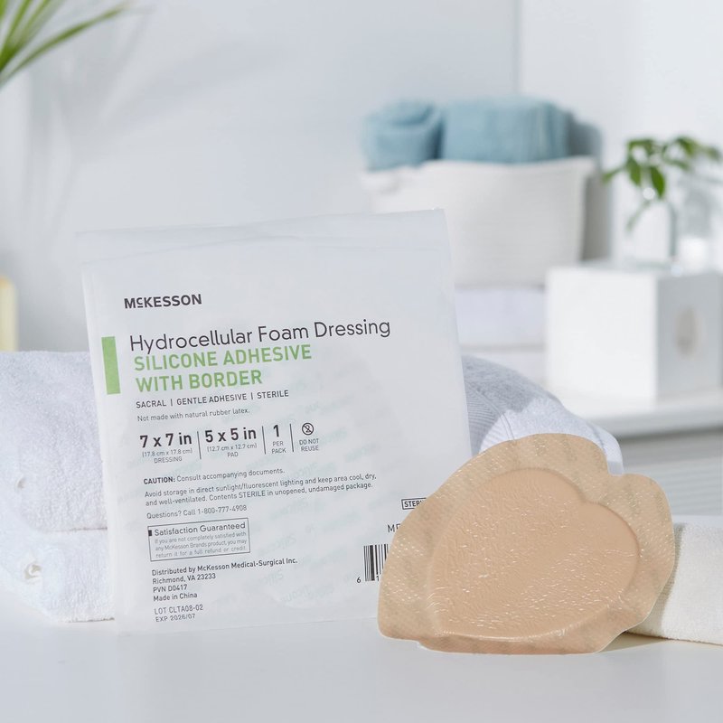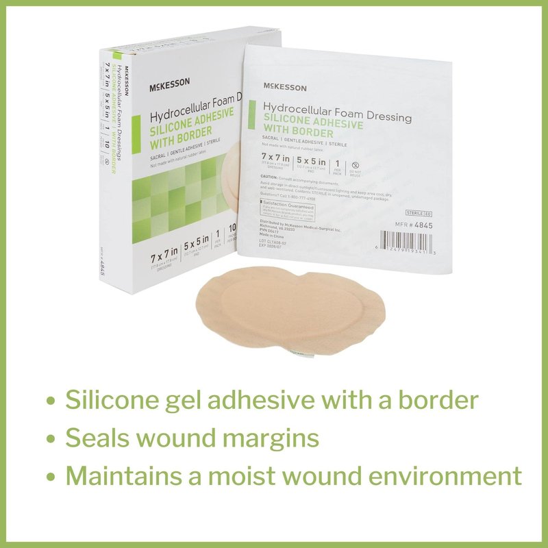 McKesson Hydrocellular Foam Dressings, Sterile, Silicone Adhesive with Border, Dimension 7 in x 7 in, Pad 5 in x 5 in, 10 Count, 1 Pack