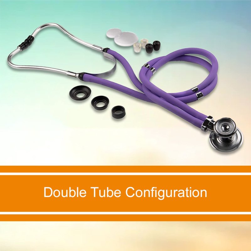Make accurate diagnostics and vital checks with the help of the McKesson LUMEON Sprague Rappaport stethoscope and eight-piece accessory kit. It has a convertible chest piece and five interchangeable fittings to choose from. Check the vitals of adult and children, and switch between the three bell sizes (1-1/4 inch, 1 inch, 3/4 inch) included with the lavender stethoscope. A patented valve mechanism greatly reduces sound leakage, making it easier to hear lungs and hearts clearly. The chest piece key makes diaphragm changes quick and easy when using this 22-inch stethoscope with different patients. It has lavender tubing and an gasket-sealed system to further improve acoustic quality and make bodily sounds distinct. The medical stethoscope is highly flexible and has dual tubes for sound separation. Included pairs of silicone and PVC ear tips offer comfortable options for the user.