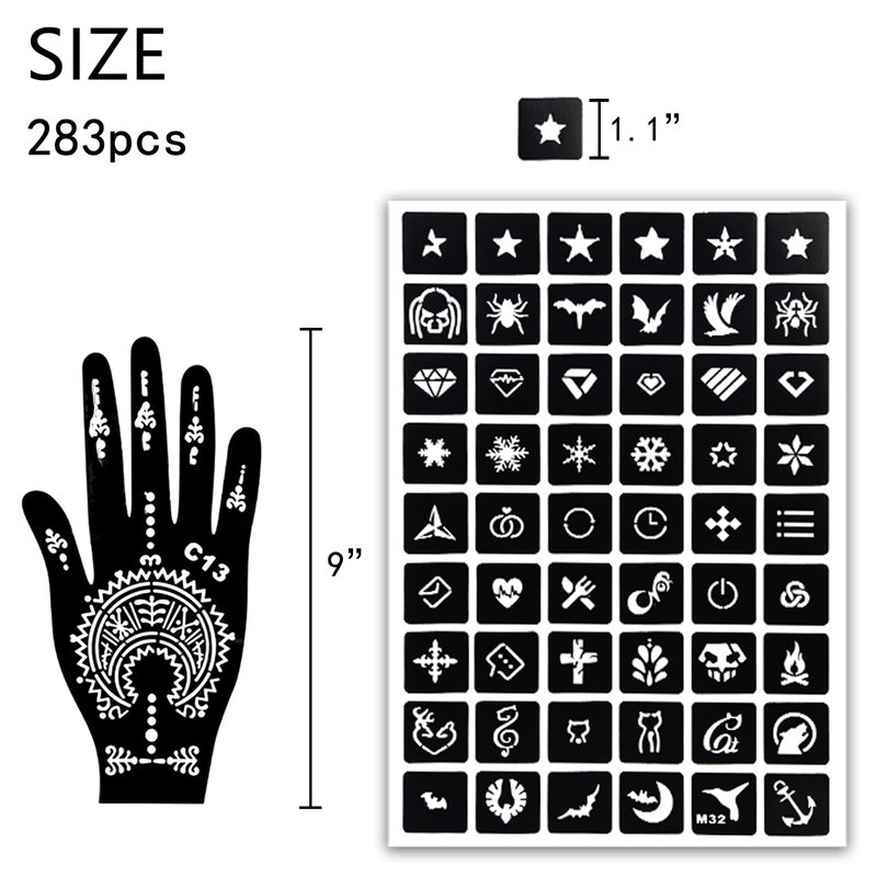 - Safety Guaranteed - Our Henna tattoo stencils are meticulously crafted from top-quality PVC, ensuring the stencils are non-toxic, eco-friendly, waterproof, tear-resistant, and long-lasting. These stencils have undergone rigorous testing and certification processes, ensuring the stencils are completely safe for use.