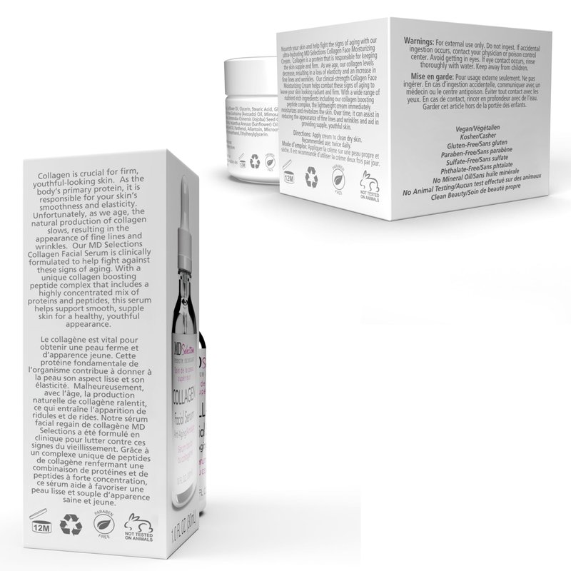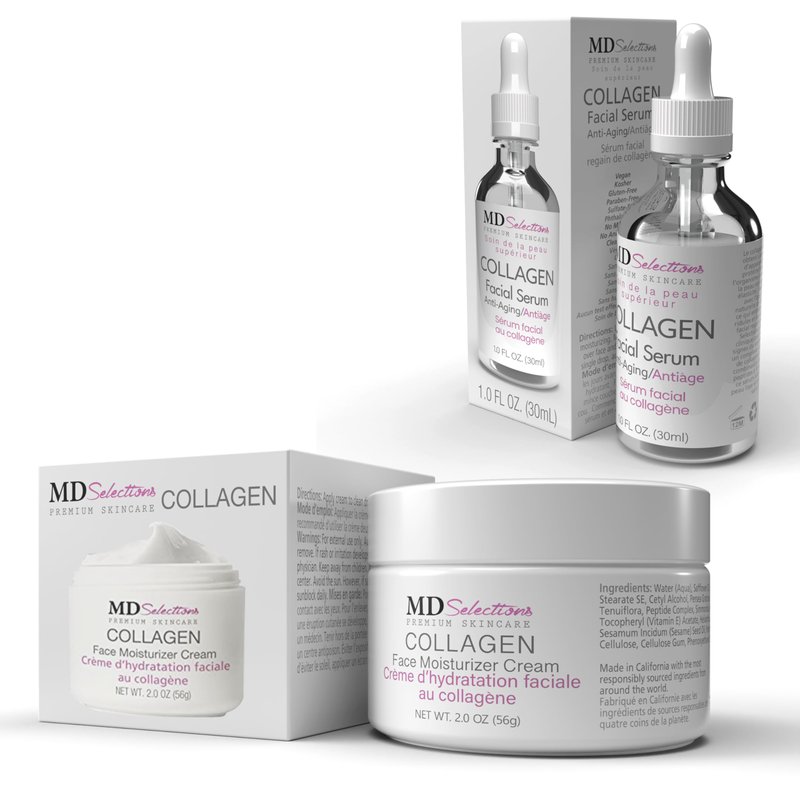 MD Selections Collagen Facial Serum & Cream | Face Moisturizer Advanced Collagen Peptide | Tighten for Dry Skin Vegan Repair Anti Aging Hydratation Faciale Formula | Serum 1 Fl Oz, Cream 2 Oz