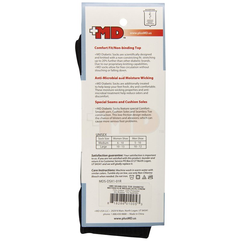 MD USA Seamless Toe-Wave-In Mesh Diabetic Crew Socks, Black, Medium