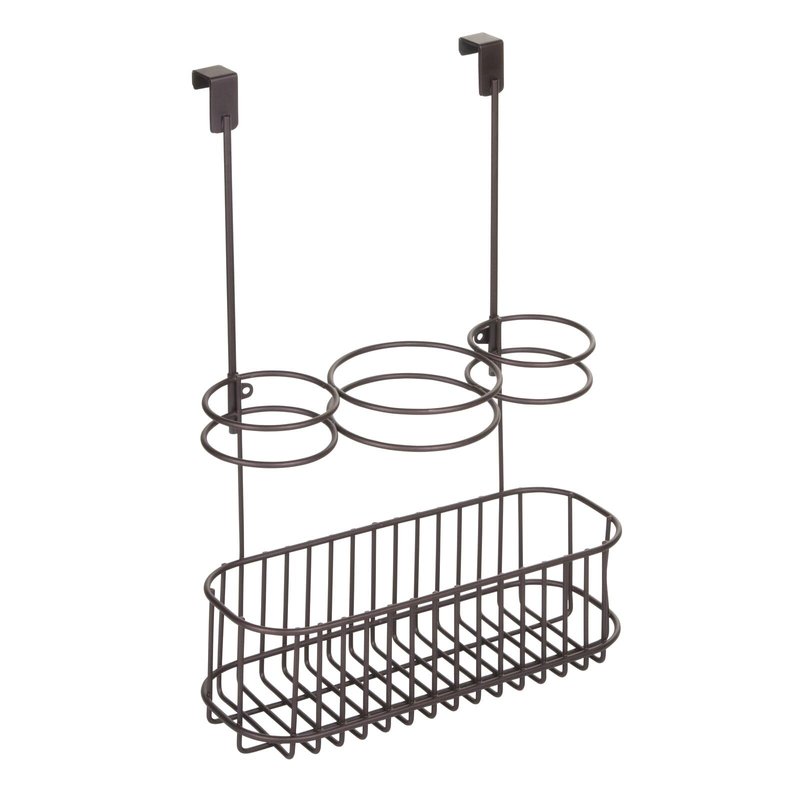 mDesign Steel Over Cabinet Door Hair Care, Hot Styling Tool Organizer Storage Basket for Hair Dryer, Flat Irons, Curling Wands, Straighteners, Space Saving, 3 Sections, Concerto Collection, Bronze