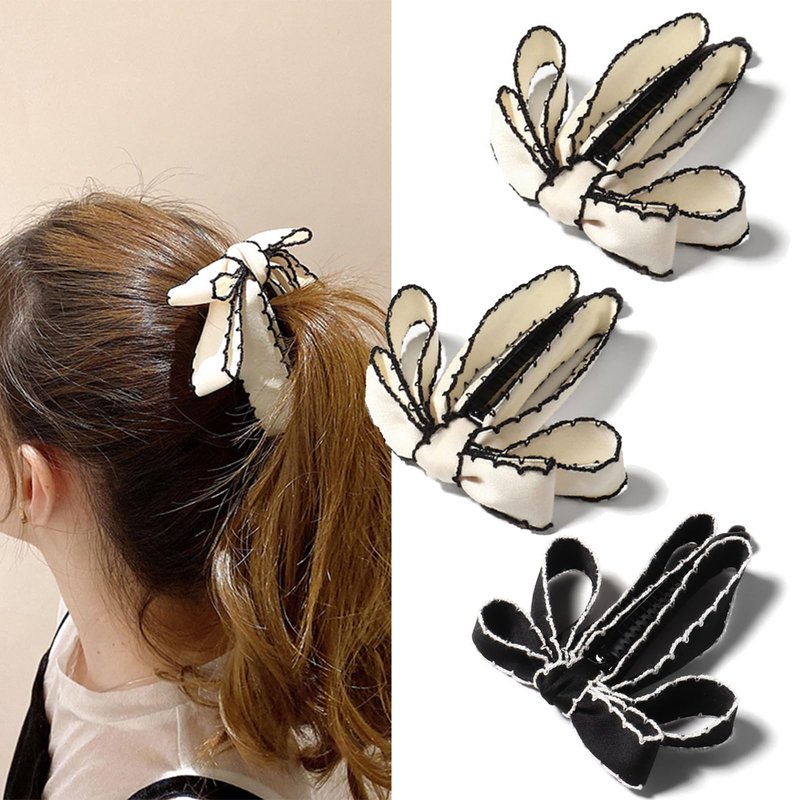 Solid Color Fashion Fabric Bow Banana Hair Clips Hairpin for Women Back Head Ponytail Headdress Hair Accessories