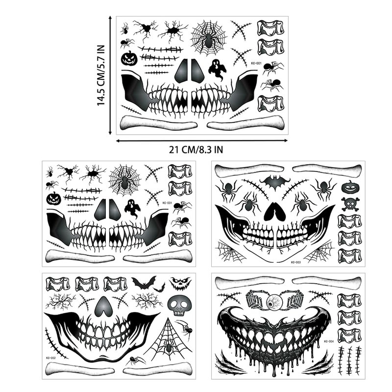 - Packing: You will receive 4 pcs skull tattoos, and our Halloween face tattoos each pattern is unique, and seems very realistic and natural. These various pattern tattoos meet your Halloween makeup needs